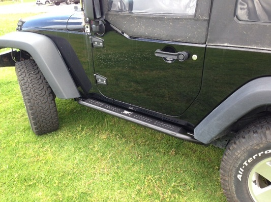 JK Wrangler Sliders-side step. These sliders not only look good but can take a beating. These add some serious protection to the side of you Jeep while also acting as a step for those who need it.